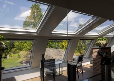 De BASkapel® is een prefab dakopbouw die volledig wordt opgebouwd met VELUX dakramen. Hierdoor ontstaat een maximale lichtinval en een sterke verbinding tussen binnen en buiten.