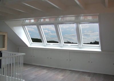 De kracht van de BASkapel® zit in de manier van opbouwen: geen standaard indelingen, maar een oplossing die volledig wordt ontworpen en opgebouwd op basis van de woning en de gewenste ruimte. Vrijwel alle varianten VELUX dakramen kunnen hierin worden verwerkt, van compacte opstellingen tot brede lichtoplossingen.